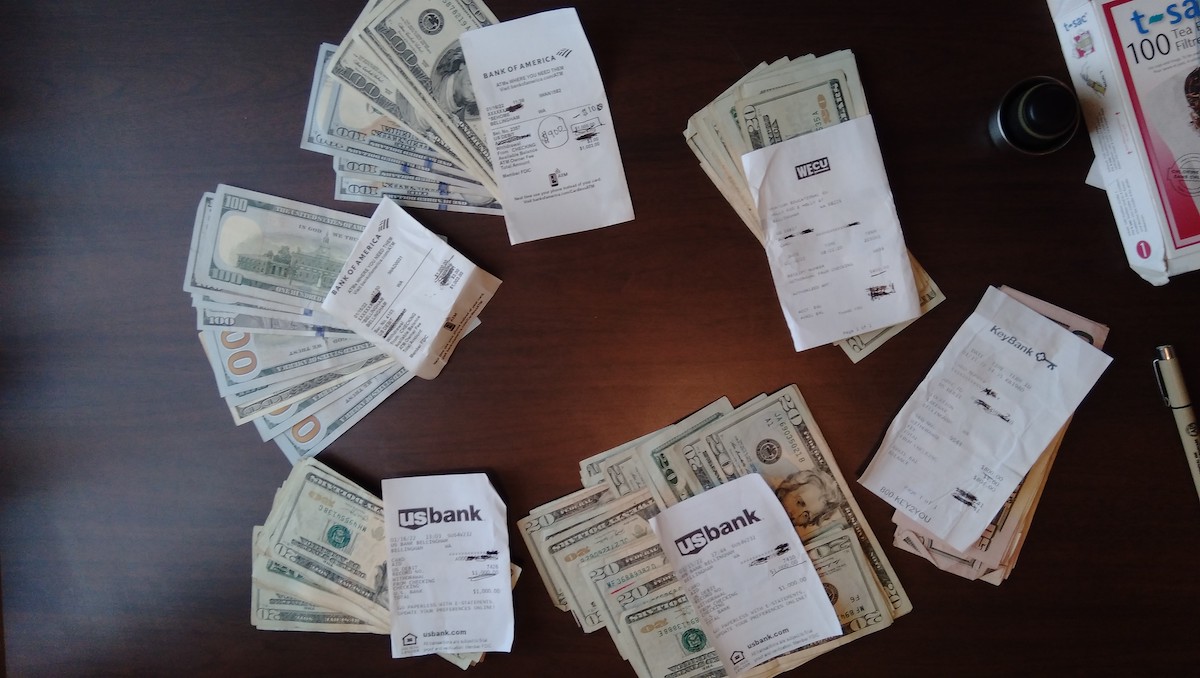I couldn’t find many atms where we were and being on foot in a new city made it more difficult. Of course he never offered a ride to some atm’s. Over a period of like 2 days I went to like 20-30 atm’s encountering withdrawal limitations, out of service machines, etc. Then I finally get it all out to pay him after he leaves on Sunday morning to go to Seattle for work and school.